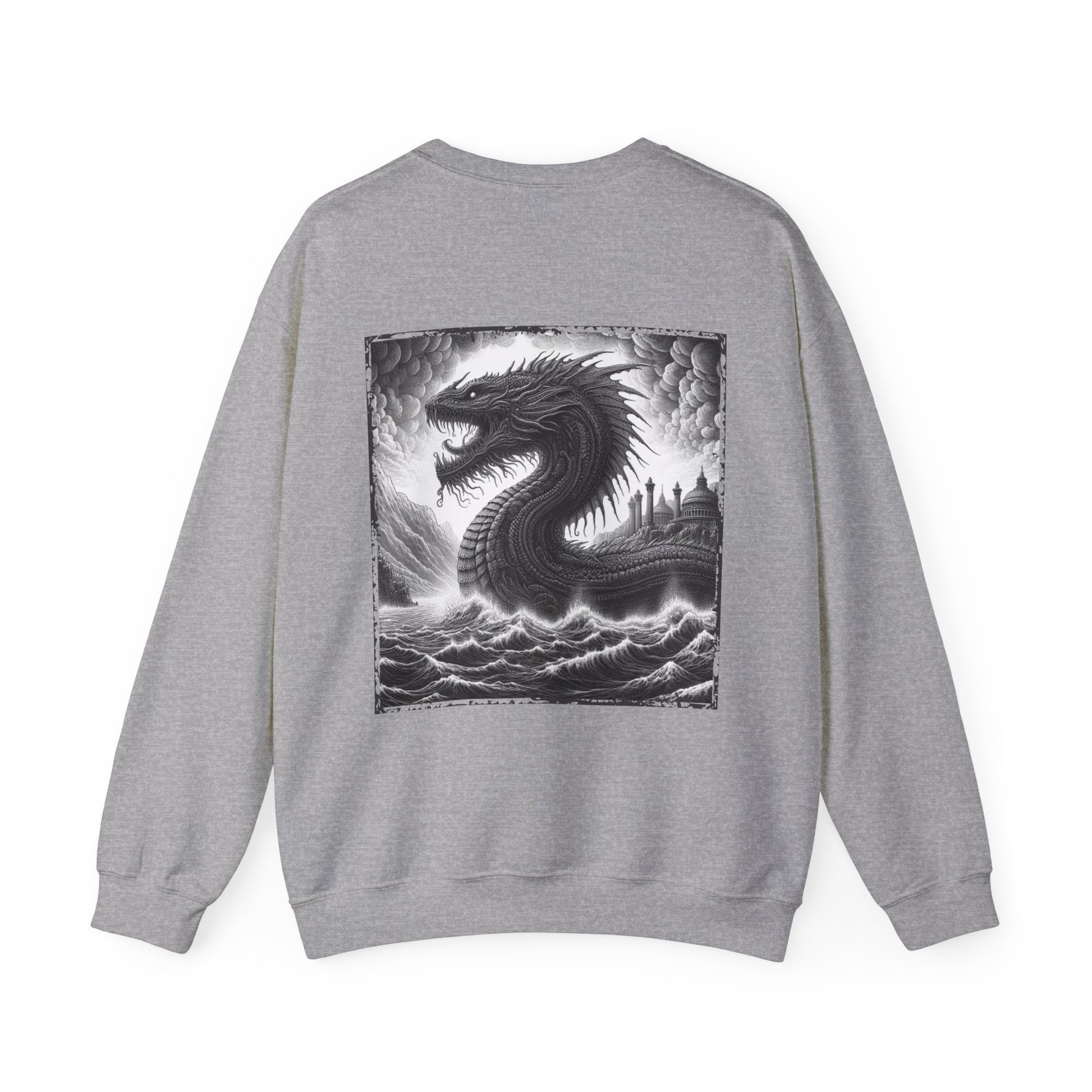 This Greek Leviathan Sweatshirt exudes a mystical and powerful vibe, perfect for those who appreciate ancient mythology and dark aesthetics. Ideal for adults looking for a cozy and unique piece to add to their wardrobe, this sweatshirt is suitable for casual wear or as a statement piece for themed events or Halloween. Product features - Made from a medium-heavy 50/50 cotton-polyester blend for comfort and durability - Ribbed knit collar with seam for shape retention - Ethically sourced US cotton with OEKO-TEX certified dyes - Available embroidery decoration on various parts of the sweatshirt - Great for fans of ancient mythology and dark aesthetics Care instructions - Machine wash: cold (max 30C or 90F) - Non-chlorine: bleach as needed - Tumble dry: low heat - Do not iron - Do not dryclean
