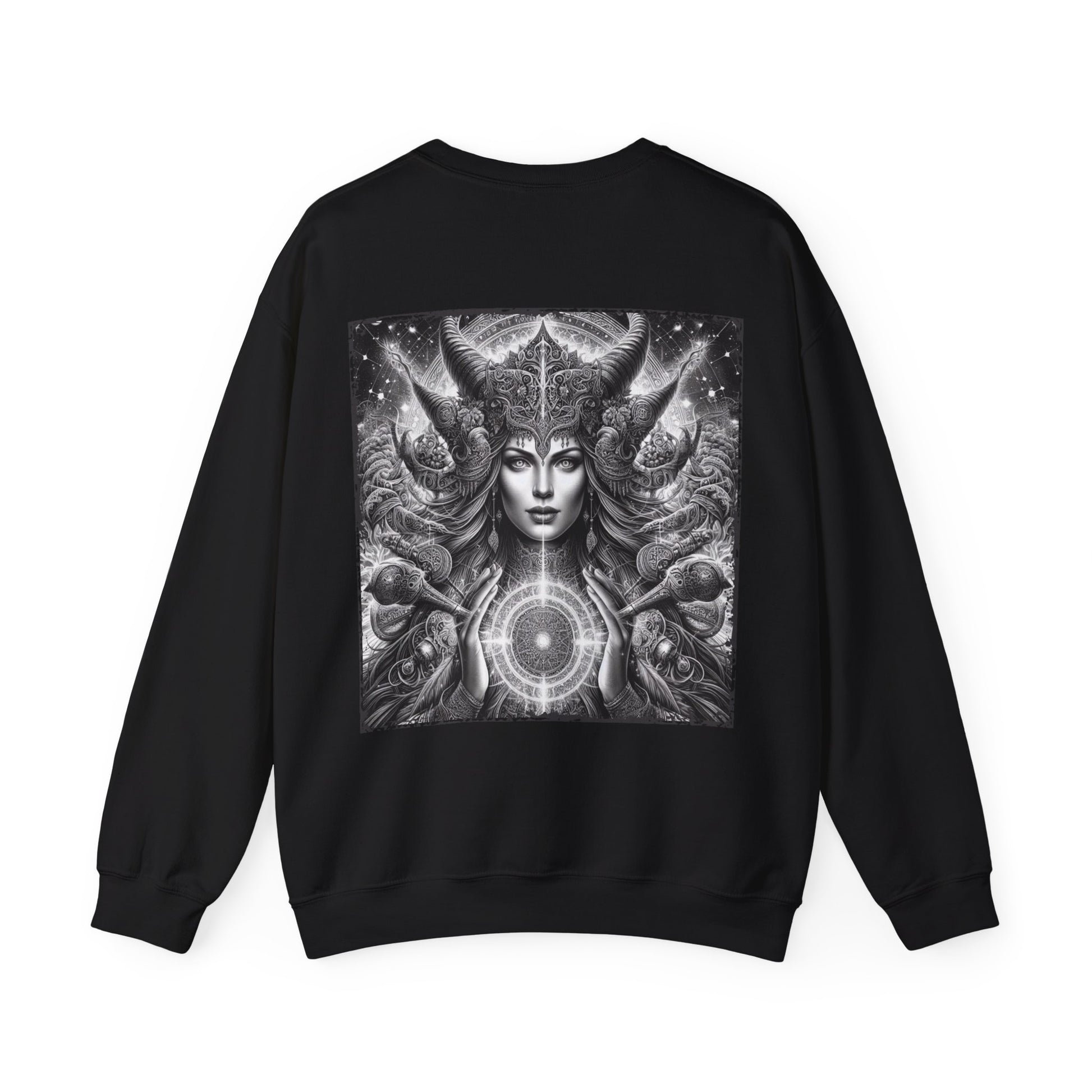 Elevate your wardrobe with this stunning crewneck sweatshirt, perfect for those who appreciate art and comfort. With its sleek design and intricate embroidery, this sweatshirt radiates a cozy, stylish vibe that can seamlessly transition from casual outings to cozy nights in. It's ideal for anyone looking to express their individuality and love for unique designs. Great for colder months and perfect for holidays such as Halloween and Winter Solstice, this sweatshirt is a fantastic gift for fashion-forward friends or family members who cherish self-expression. Its classic fit ensures that it's suitable for adults of all styles, making it a versatile addition to any closet. Product features - Seamless tubular knit construction for a cleaner look and reduced fabric waste. - Ribbed knit collar retains shape and adds elasticity for comfort. - Ethically made in Nicaragua, ensuring quality and sustainability. - Available for embroidery on various areas for personalization. - Crafted from a soft and durable 50/50 cotton-polyester blend, designed for ultimate comfort. Care instructions - Machine wash: cold (max 30C or 90F) - Non-chlorine: bleach as needed - Tumble dry: low heat - Do not iron - Do not dryclean