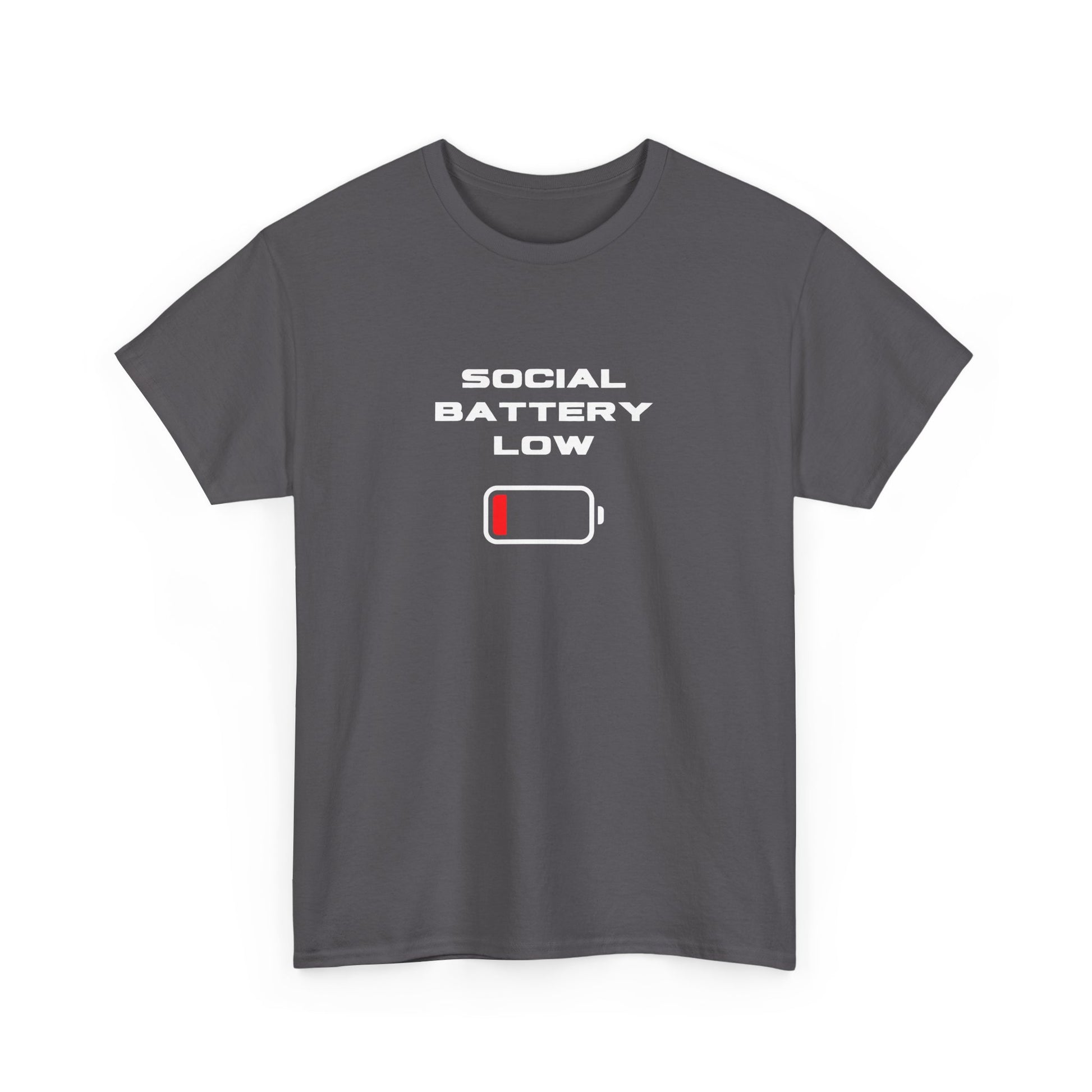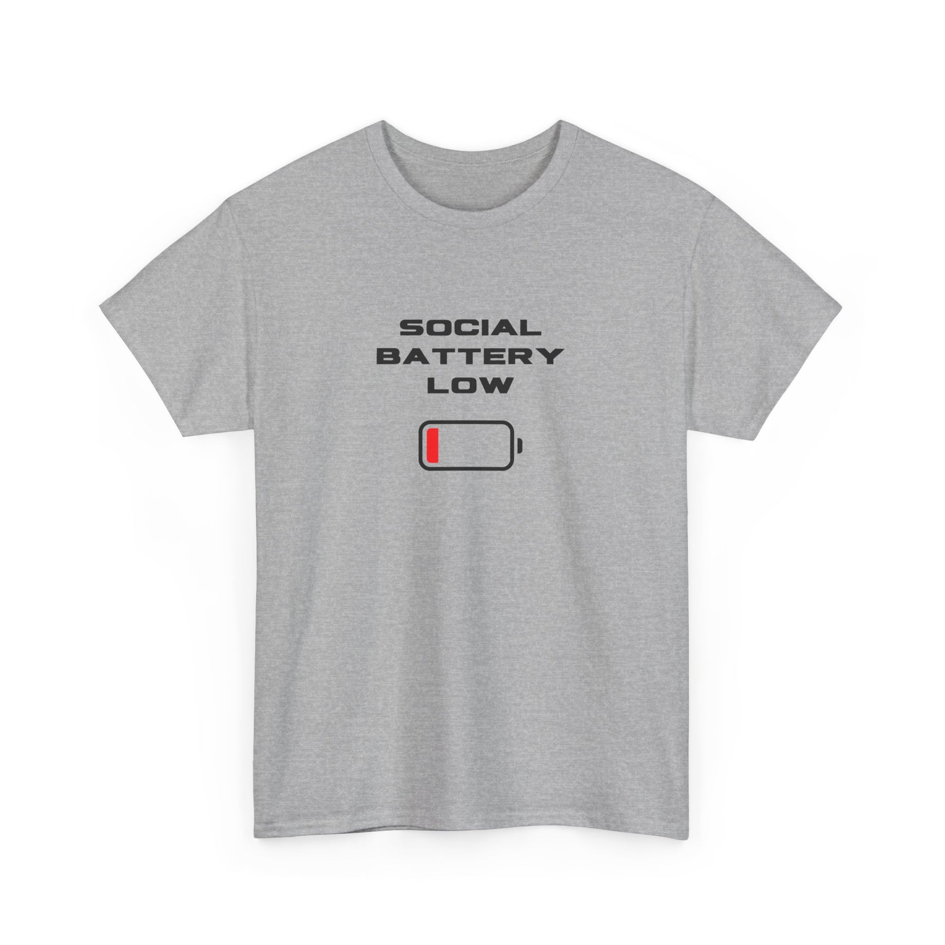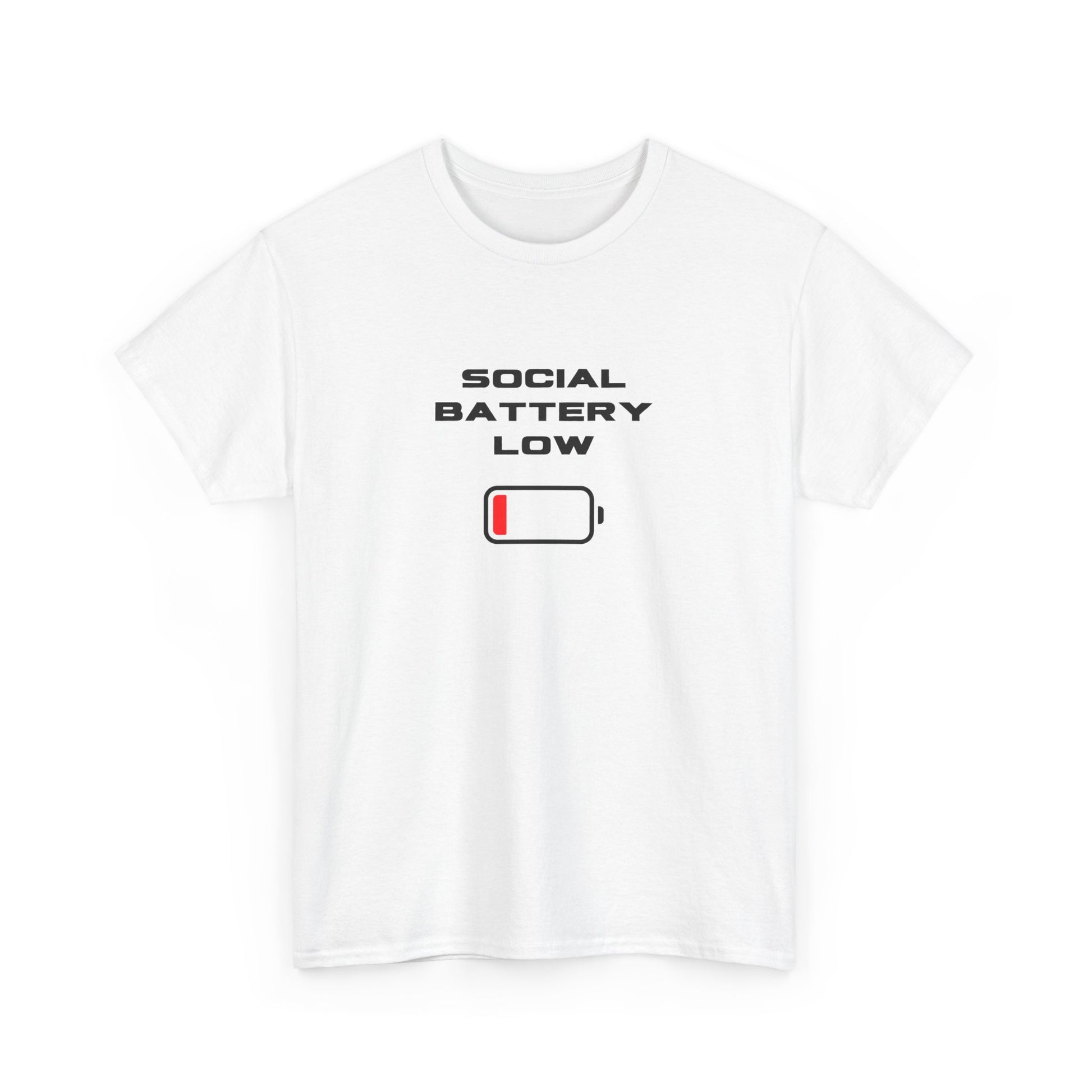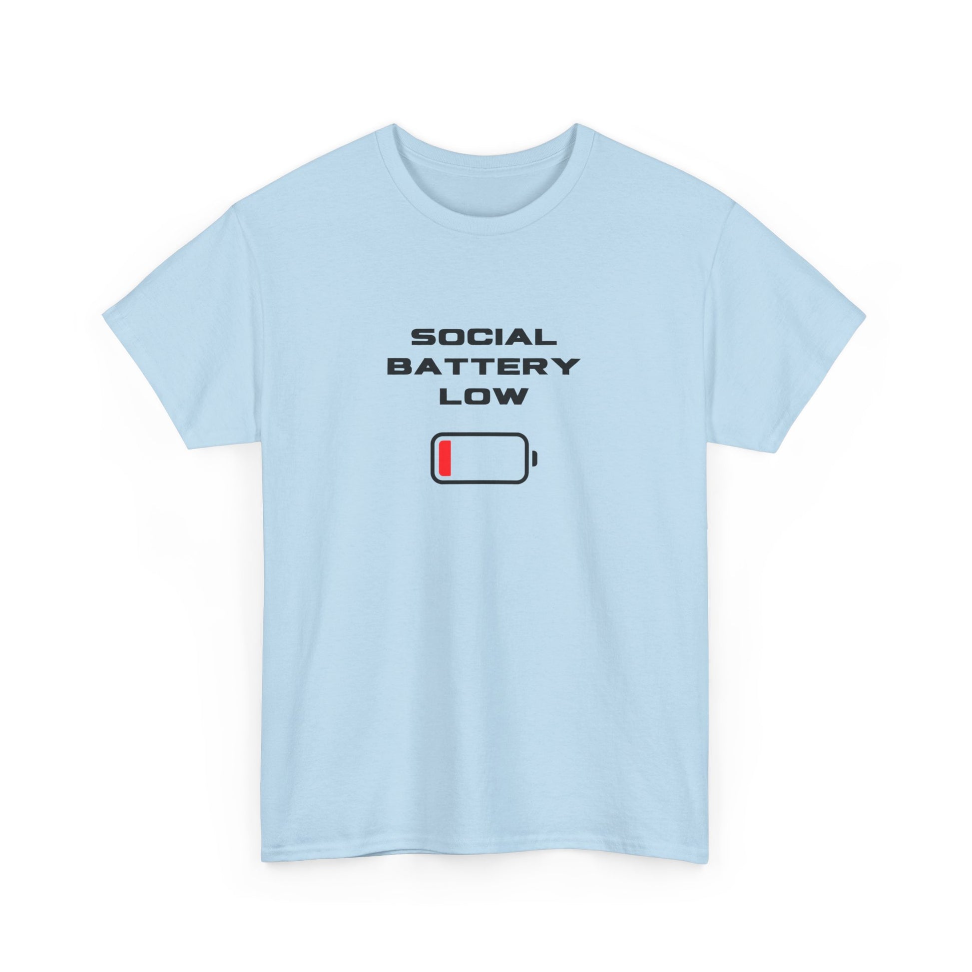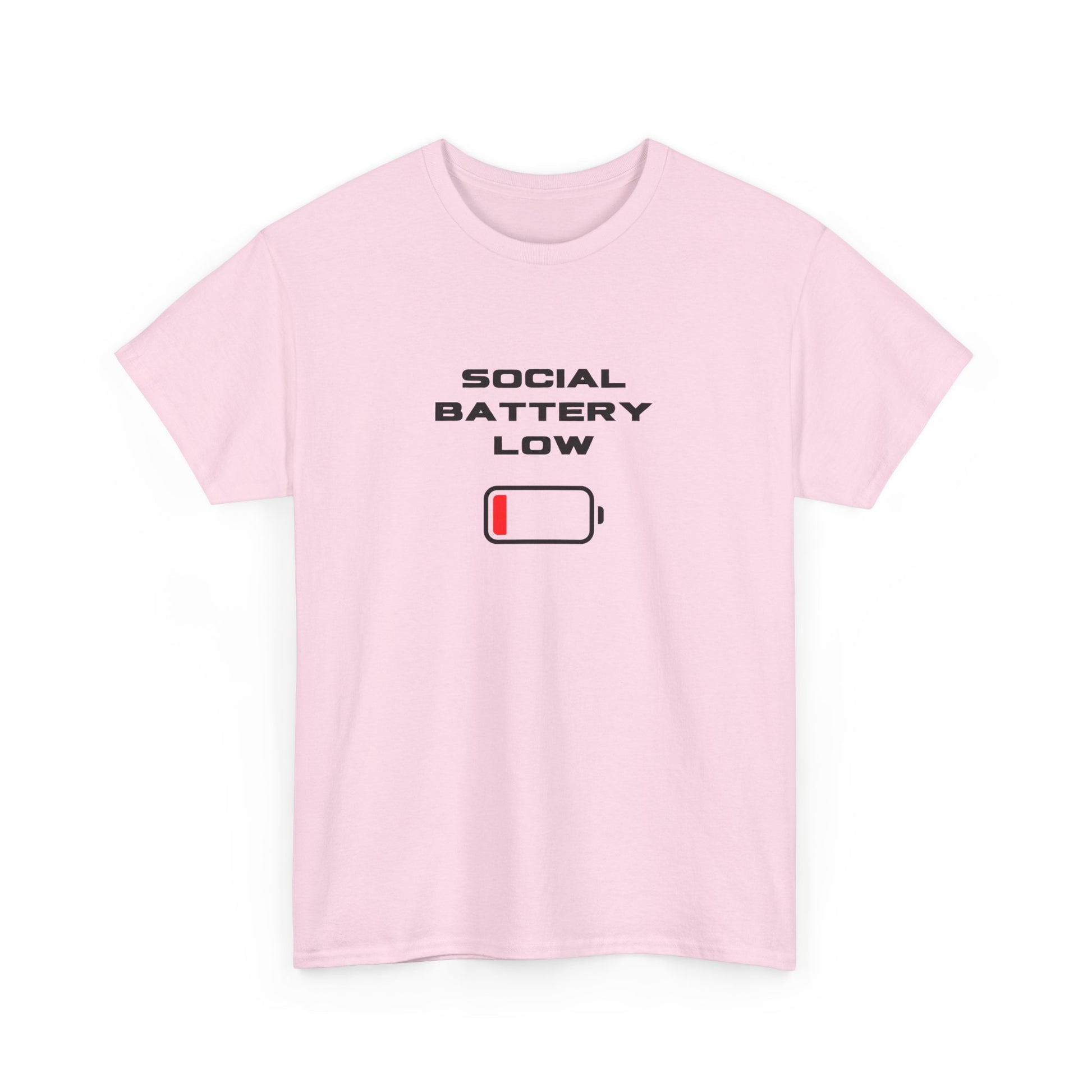 Introducing the perfect wardrobe staple, this Unisex Heavy Cotton Tee exudes comfort and style. With a modern and playful graphic design stating 'Social Battery Low', it perfectly captures the essence of our busy, connected lives, making it a great conversation starter. This versatile tee is suitable for anyone who values casual wear that also reflects their moods and personality, be it teens, young adults, or anyone who enjoys a laid-back vibe. Ideal for casual outings, relaxed gatherings, or even as a humorous gift for friends, this tee brings a light-hearted spirit to holidays such as birthdays or informal celebrations. Wear it while lounging at home or out for coffee with friends — it’s the ultimate blend of comfort and personality!